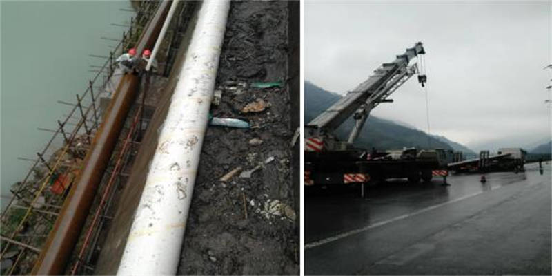 2018年11月13日,我公司接到該應急任務后,立即組織技術人員進行現(xiàn)場考察及施工放樣工作,并于11月18日安排施工人員及機械進場施工。通過科學安排,精心組織,我公司工程人員搶抓工期,克難攻堅,歷時40天,于2018年12月28日下午在雨夾雪中完成了最后一根鋼管的安裝。該工程總共完成波紋管埋置750米,鋼管安設350米。目前,黃泥崗主體工程任務已保質保量按期完成。