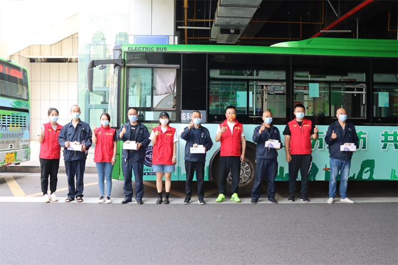 最后,青年團(tuán)員們帶著親手制作的40份防疫香囊、藿香正氣液、口罩等防疫消暑慰問品,來到市區(qū)內(nèi)的各個公交車站點開展了志愿者服務(wù)活動。團(tuán)員志愿者們親手為公交駕駛員師傅送上了慰問物質(zhì),關(guān)切詢問他們的作息時間、身體狀況等,并感謝他們?yōu)槌鞘邪l(fā)展和群眾出行付出的辛苦勞動,同時叮囑大家在高溫季節(jié)一定要注意勞逸結(jié)合,做好防疫和防暑措施。
