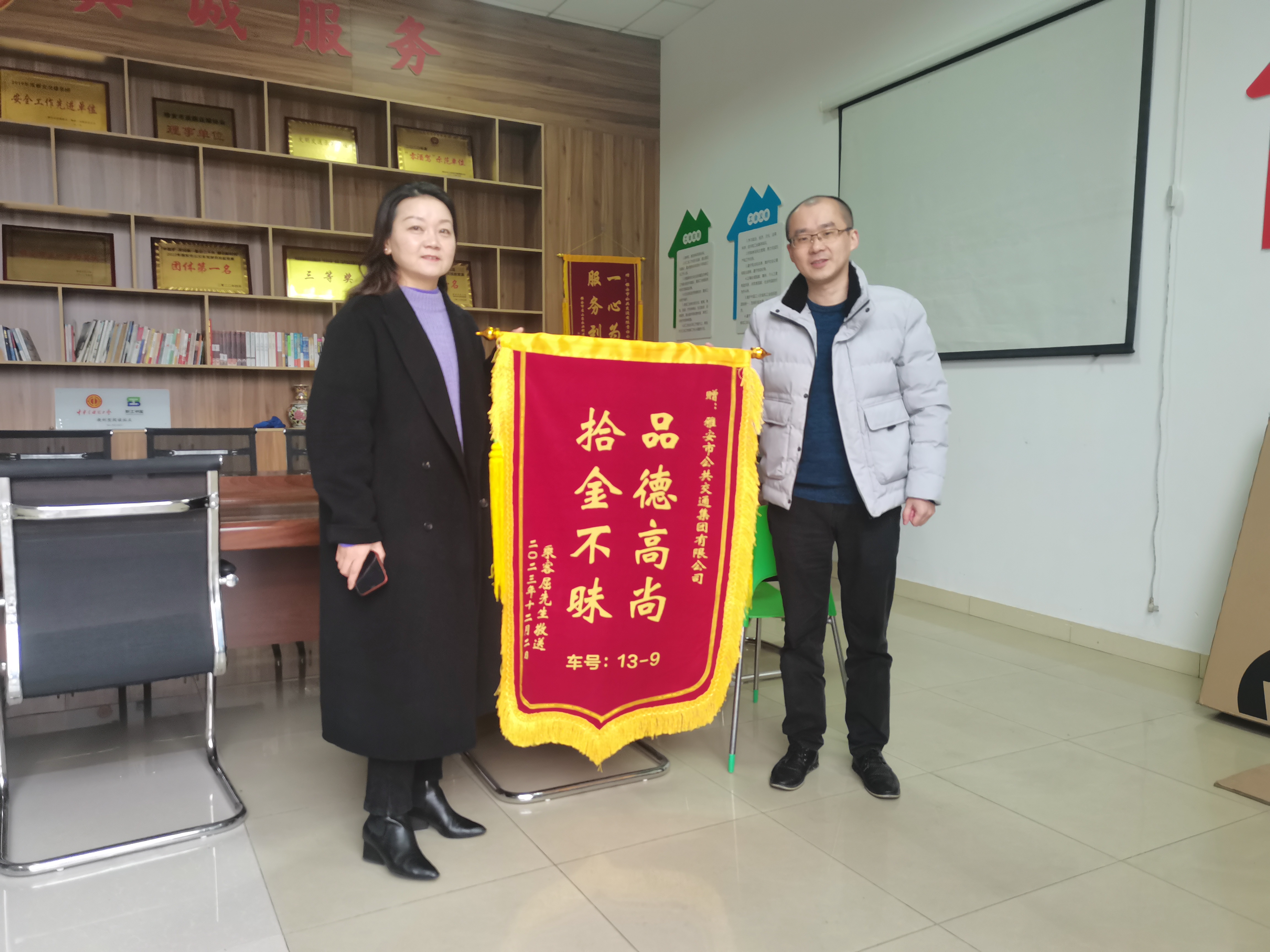 12月5日,市民屈先生帶著一面繡著“品德高尚,拾金不昧”的錦旗來到雅安公交集團(tuán),滿含激動的向工作人員表達(dá)著感謝之情,一場平板電腦失而復(fù)得的故事圓滿劃上句號。