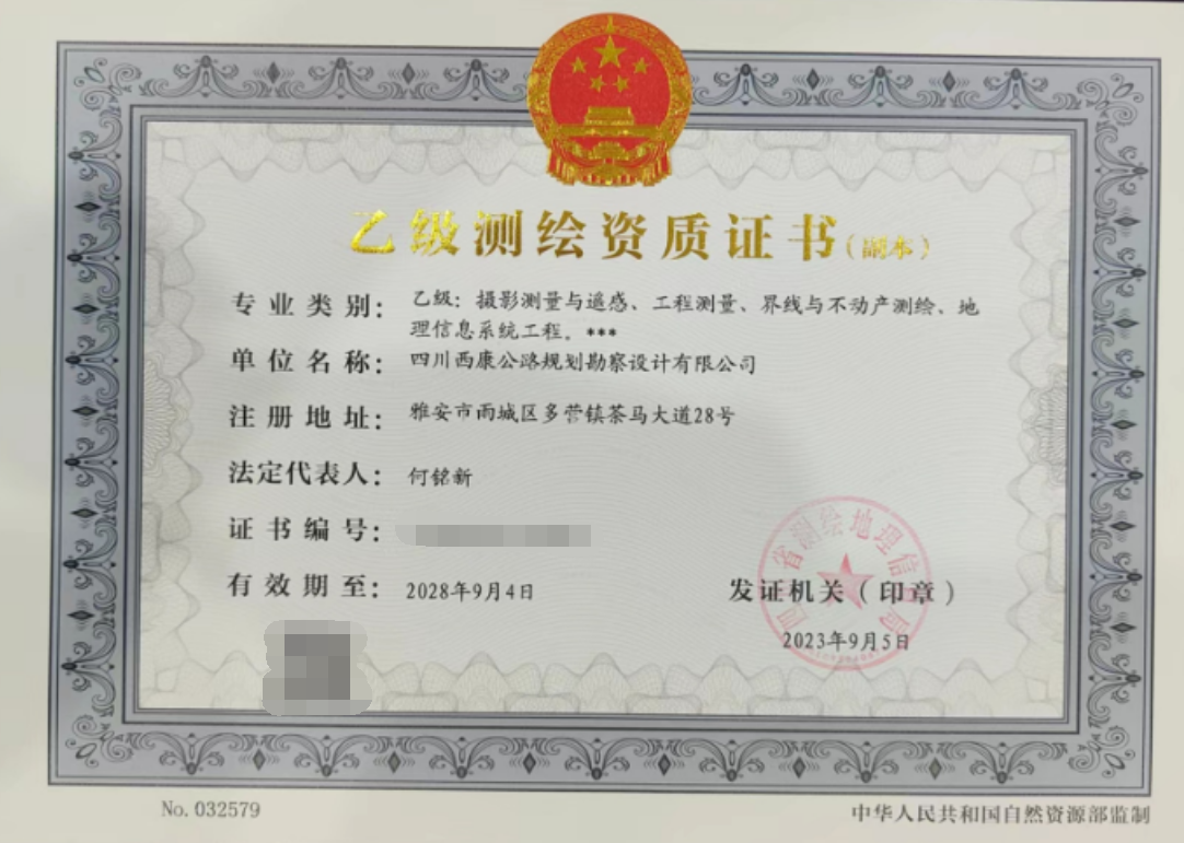 雅安交建集團(tuán)西康勘察設(shè)計有限公司取得測繪乙級資質(zhì)