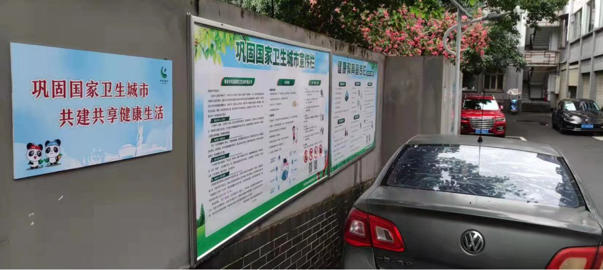 二是加強(qiáng)聯(lián)包幫大院的管理。在社區(qū)協(xié)助下院內(nèi)增添鼠毒餌盒,每天清理大院內(nèi)及門口衛(wèi)生,嚴(yán)格按照要求,做好“門前三包”工作。增設(shè)消防安全設(shè)施,保障居民消防安全。在院墻上張貼鞏固國(guó)家衛(wèi)生城市標(biāo)語(yǔ)、健康知識(shí)、禁煙標(biāo)識(shí)并及時(shí)更新,為國(guó)衛(wèi)復(fù)審工作營(yíng)造良好氛圍。