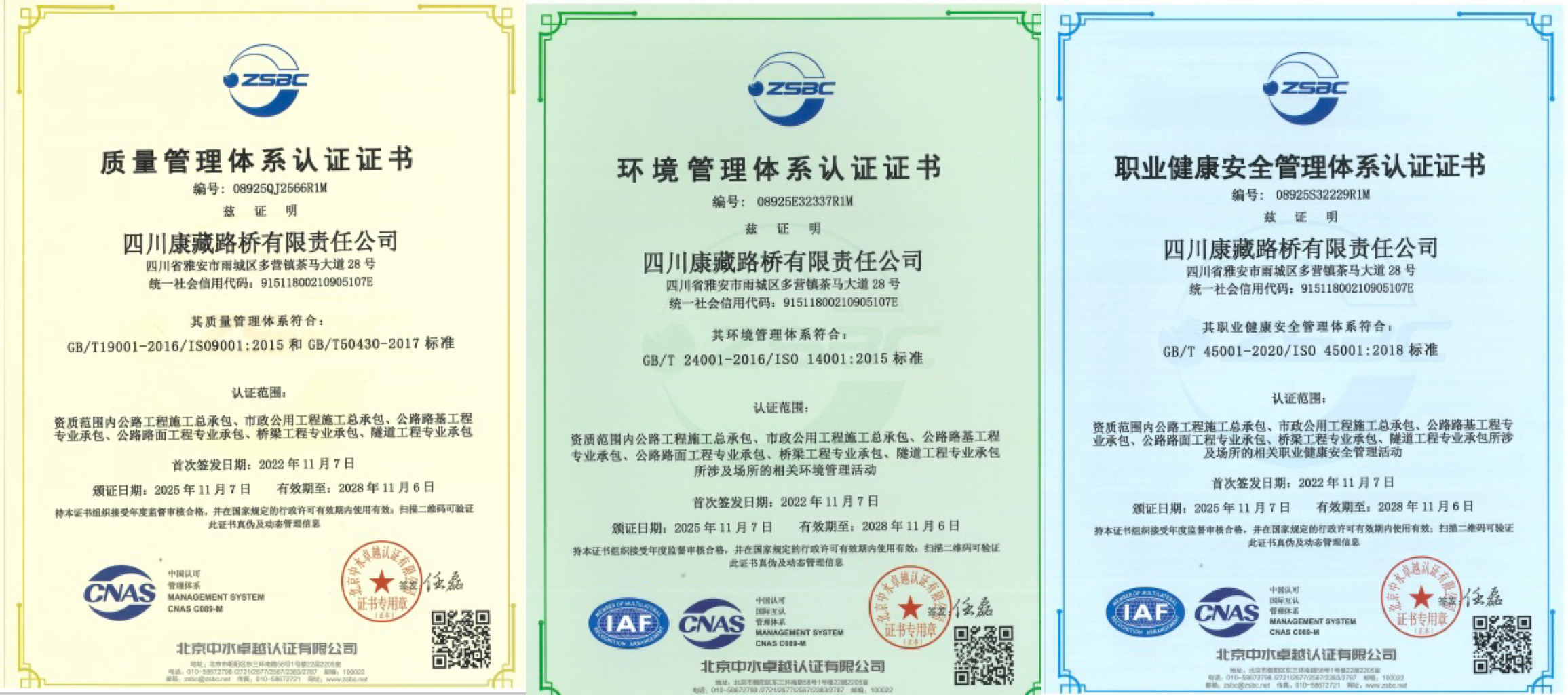 近日,康藏路橋公司順利通過質(zhì)量管理體系、環(huán)境管理體系及職業(yè)健康安全管理體系評審,并成功獲得相應(yīng)認(rèn)證證書。