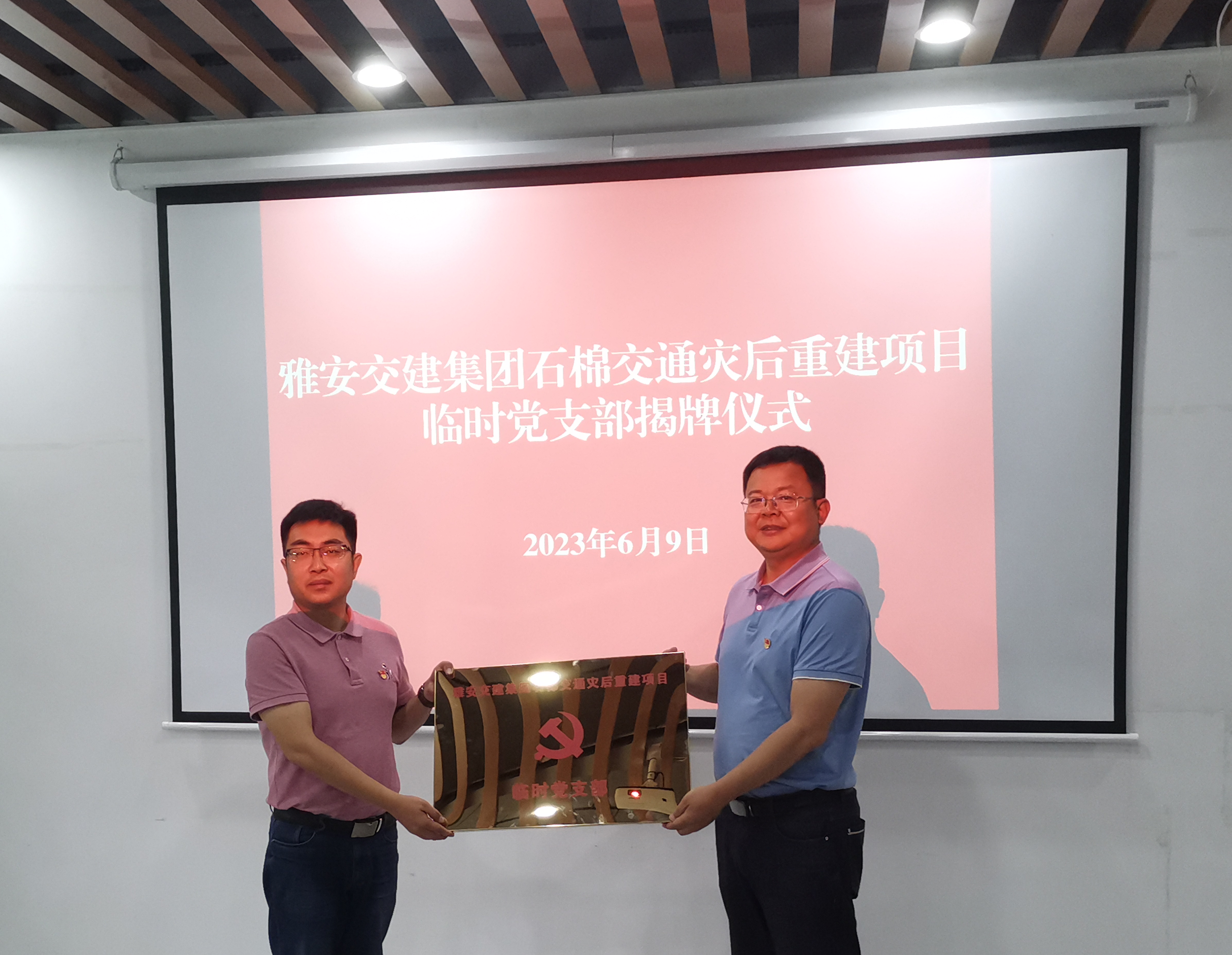 為實現(xiàn)黨的組織和黨建工作在項目一線全覆蓋,堅持把支部建在項目上,確保項目建設到哪里,黨的建設就跟進到哪里,黨員就奮戰(zhàn)在哪里。2023年6月9日上午,雅安交建集團舉行石棉交通災后重建項目臨時黨支部揭牌儀式,集團黨委副書記張萬清,臨時黨支部全體成員參加。