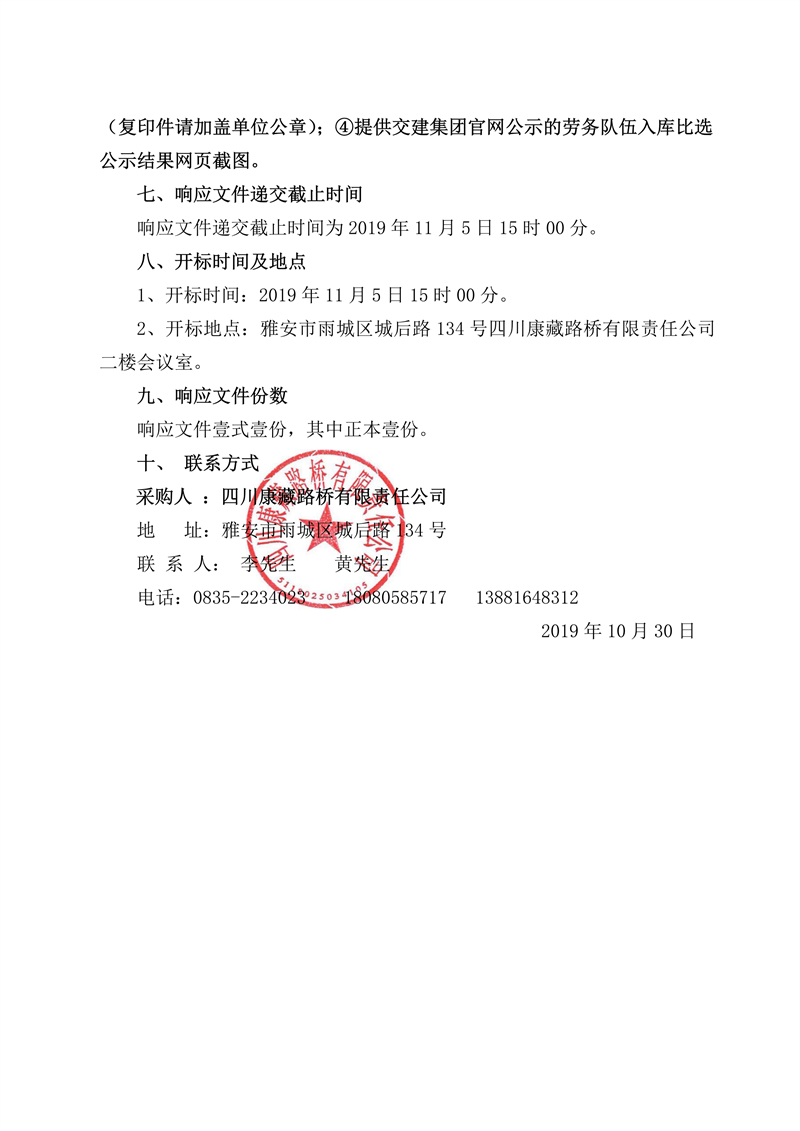 四川康藏路橋有限責(zé)任公司省道104線草壩至姚橋段改建工程項(xiàng)目擋墻(第一階段)施工勞務(wù)競(jìng)價(jià)公告
