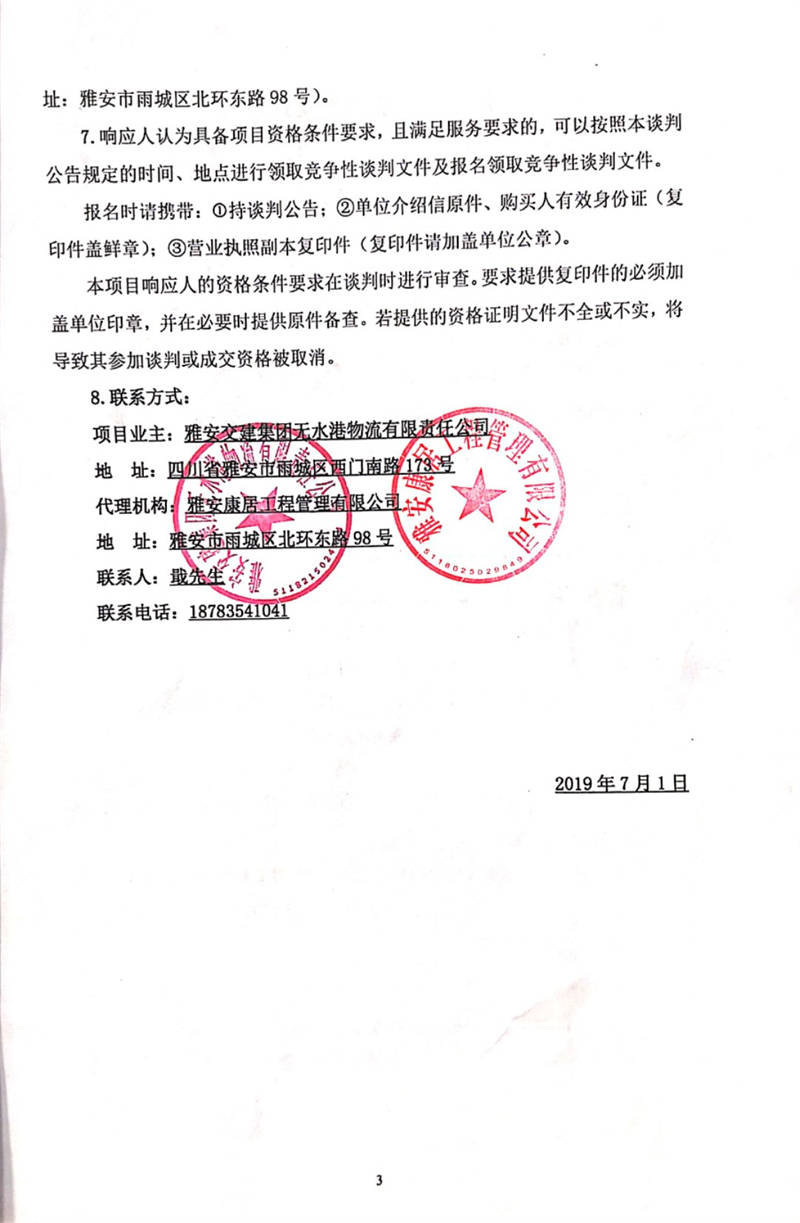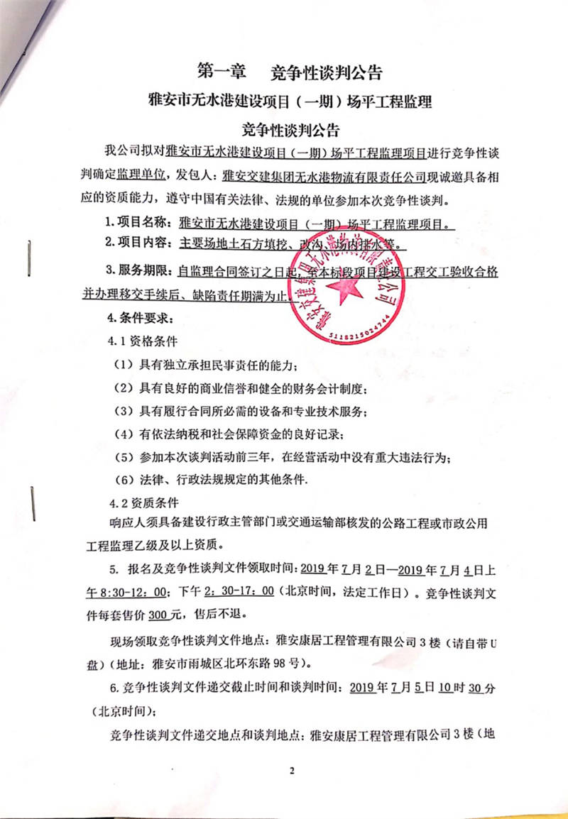 雅安交建集團無水港物流有限責(zé)任公司雅安市無水港建設(shè)項目(一期)場平工程監(jiān)理競爭性談判公告