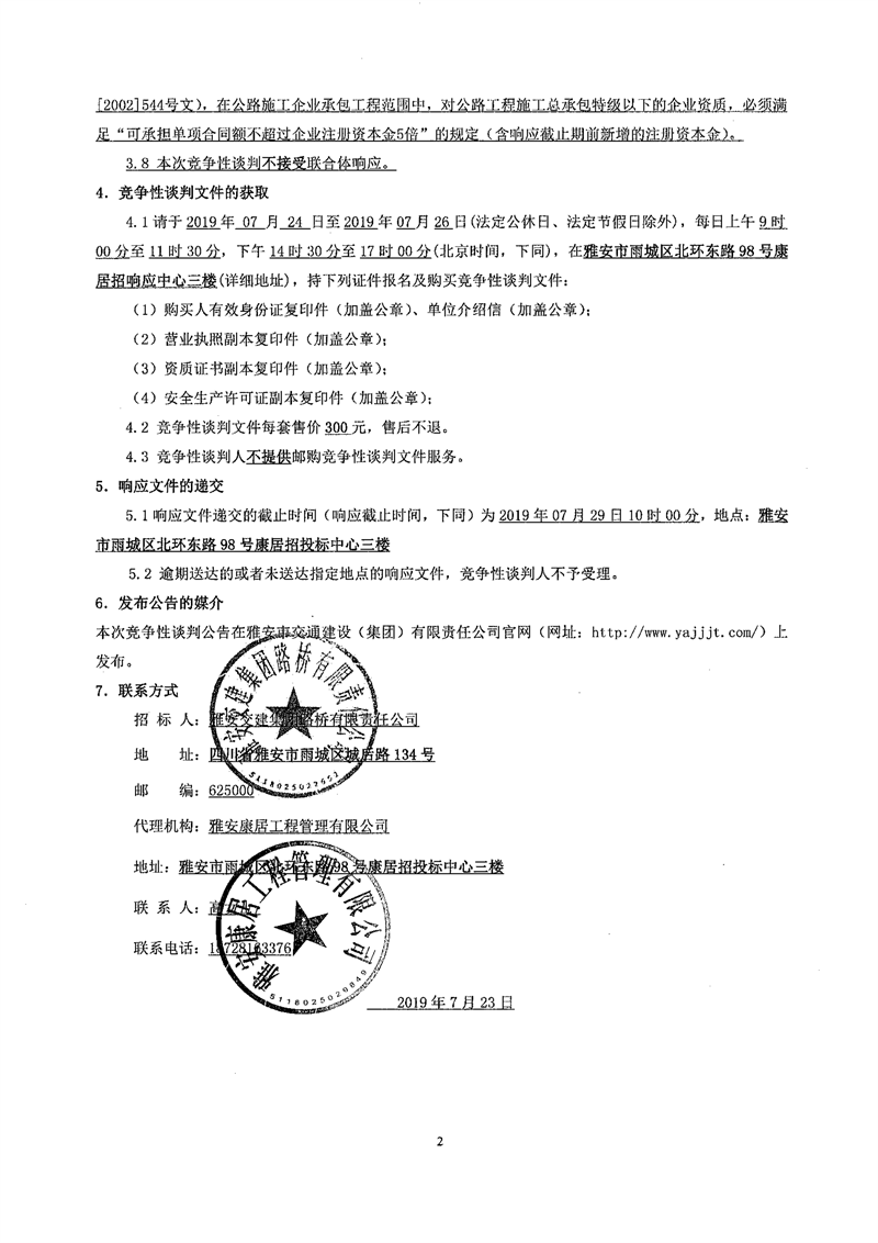 雅安交建集團(tuán)路橋有限責(zé)任公司國道351線磽磧至夾金山段路面改造工程交通安全設(shè)施施工項(xiàng)目競爭性談判公告