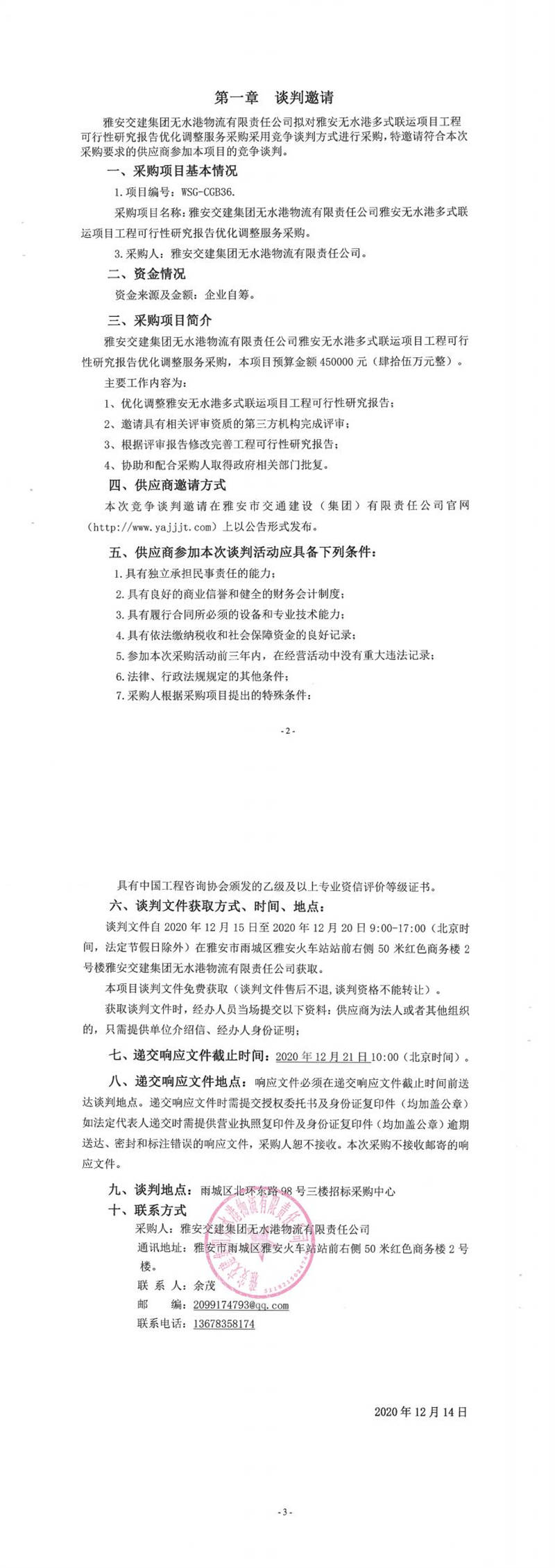 雅安交建集團無水港物流有限責任公司雅安無水港多式聯(lián)運項目工程可行性研究報告優(yōu)化調(diào)整服務采購競爭談判公告