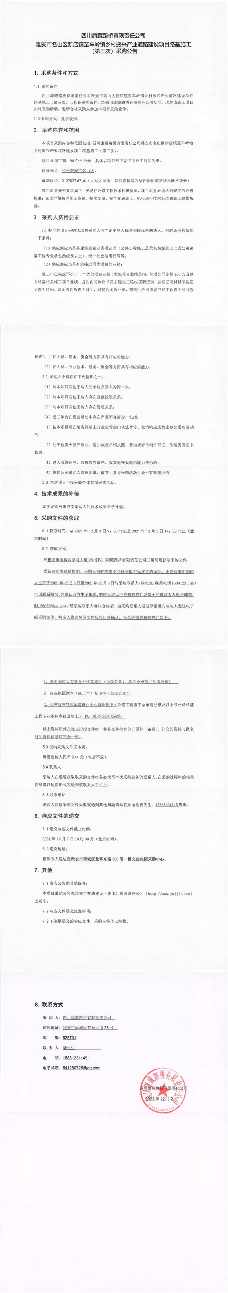 四川康藏路橋有限責任公司雅安市名山區(qū)新店鎮(zhèn)至車嶺鎮(zhèn)鄉(xiāng)村振興產業(yè)道路建設項目路基施工(第三次)采購公告