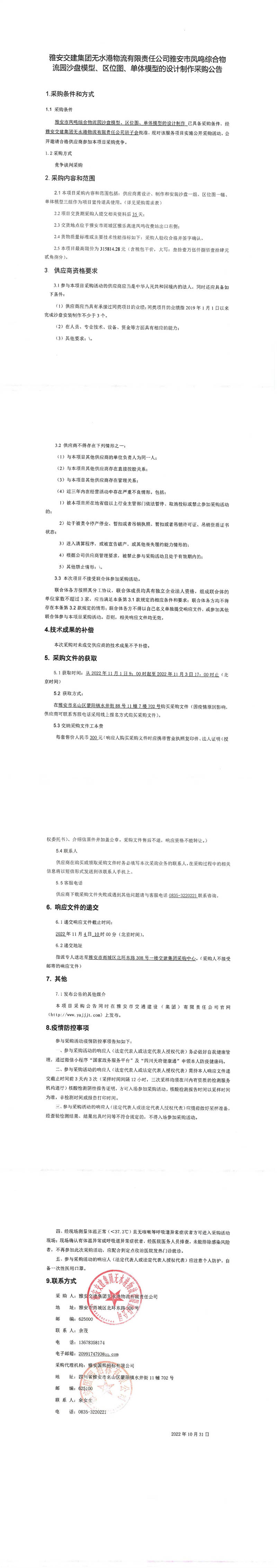 雅安交建集團(tuán)無(wú)水港物流有限責(zé)任公司雅安市鳳鳴綜合物流園沙盤模型、區(qū)位圖、單體模型的設(shè)計(jì)制作采購(gòu)公告
