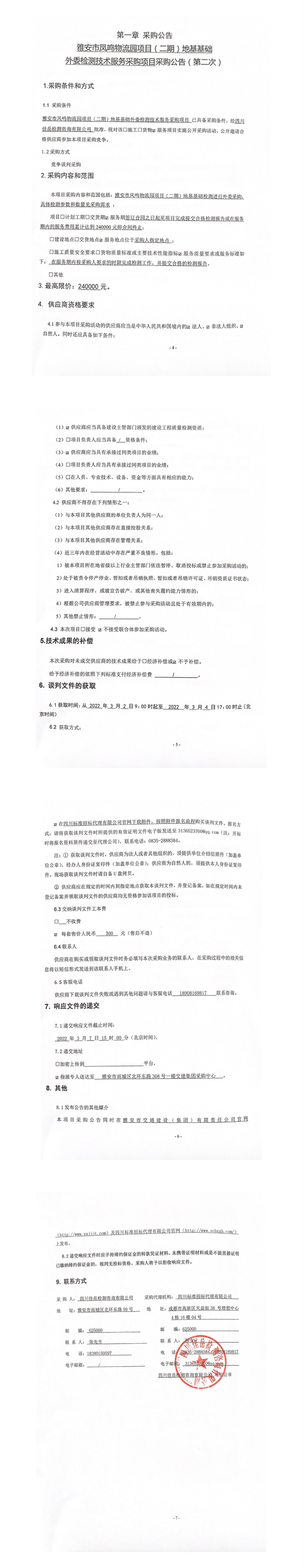 四川佳岳檢測咨詢有限公司雅安市鳳鳴物流園項(xiàng)目(二期)地基基礎(chǔ)外委檢測技術(shù)服務(wù)采購項(xiàng)目采購公告(第二次)