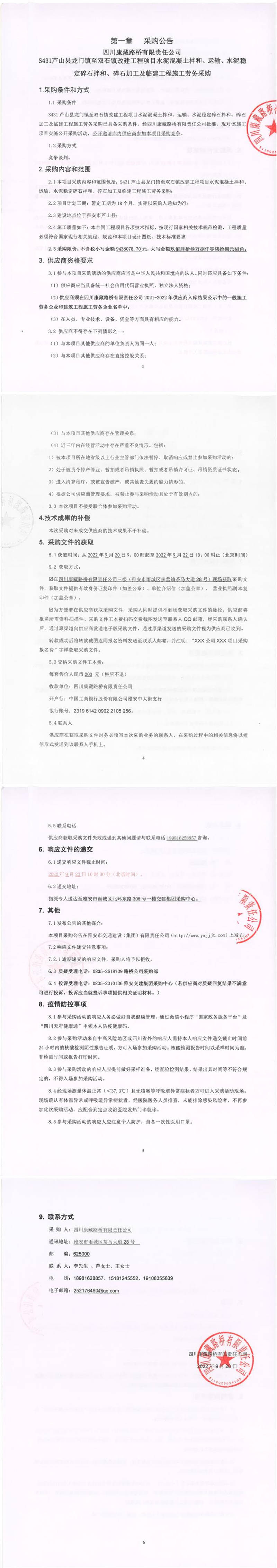 四川康藏路橋有限責任公司S431蘆山縣龍門鎮(zhèn)至雙石鎮(zhèn)改建工程項目水泥混凝土拌和、運輸、水泥穩(wěn)定碎石拌和、碎石加工及臨建工程施工勞務(wù)采購公告