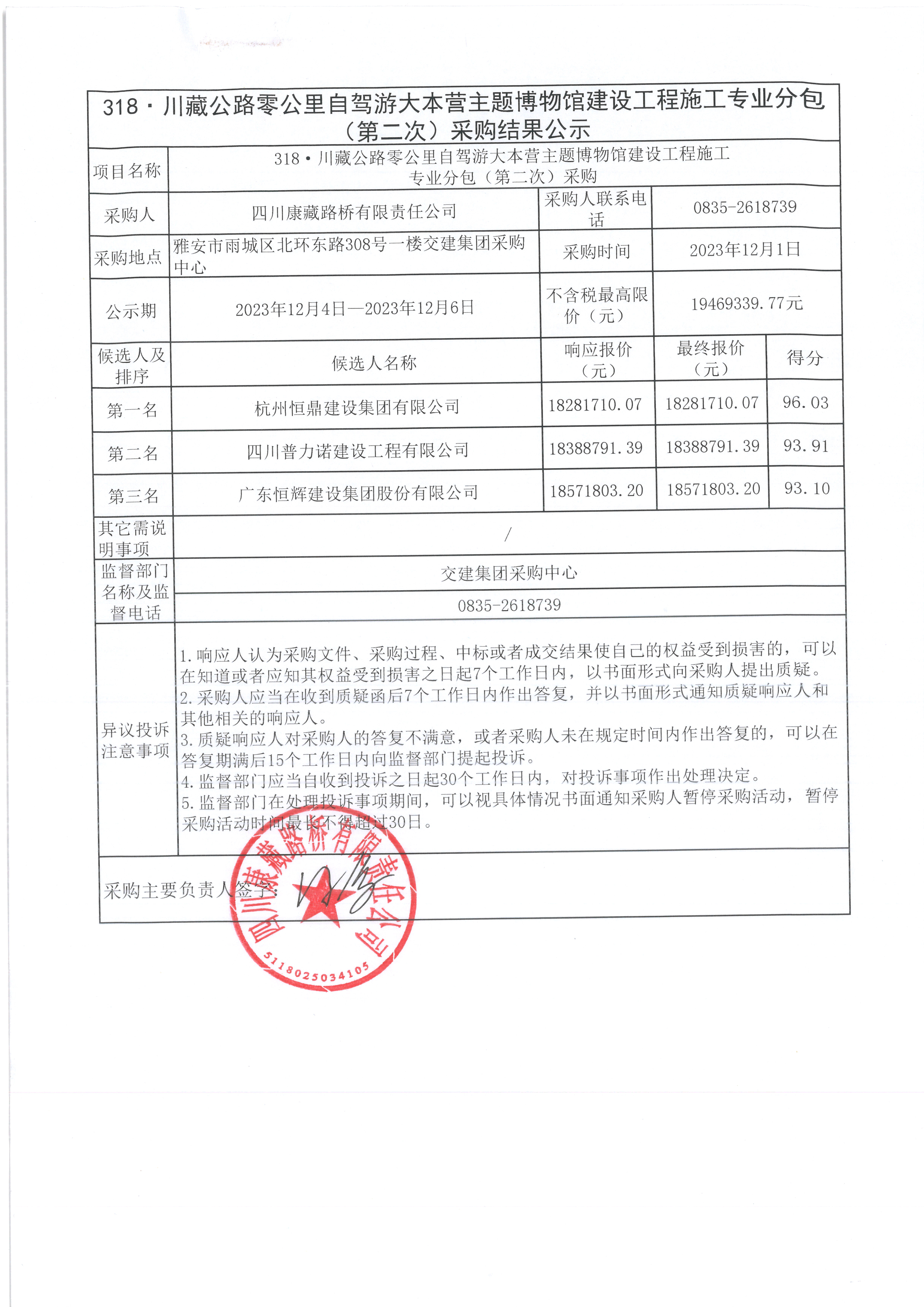 四川康藏路橋有限責任公司318·川藏公路零公里自駕游大本營主題博物館建設(shè)工程施工專業(yè)分包 (第二次)采購結(jié)果公示