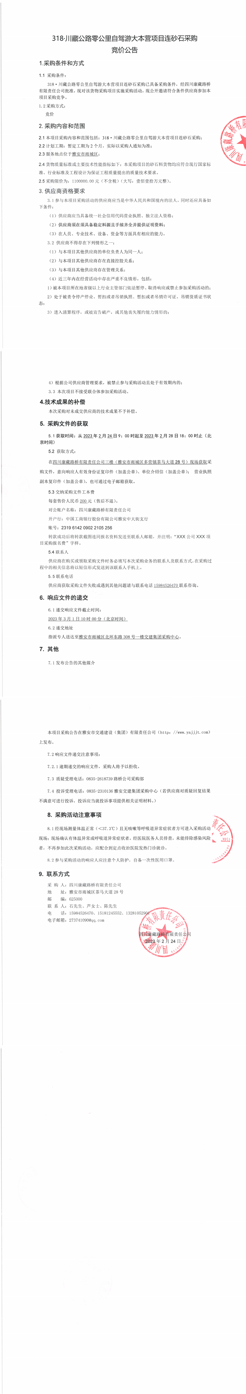 四川康藏路橋有限責(zé)任公司318·川藏公路零公里自駕游大本營項(xiàng)目連砂石采購競價公告