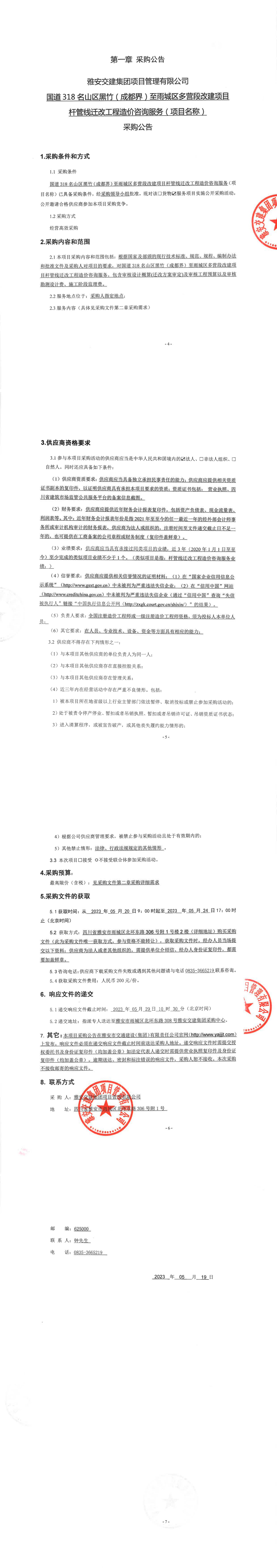 雅安交建集團(tuán)項(xiàng)目管理有限公司國(guó)道318名山區(qū)黑竹(成都界)至雨城區(qū)多營(yíng)段改建項(xiàng)目桿管線(xiàn)遷改工程造價(jià)咨詢(xún)服務(wù)(項(xiàng)目名稱(chēng))采購(gòu)公告