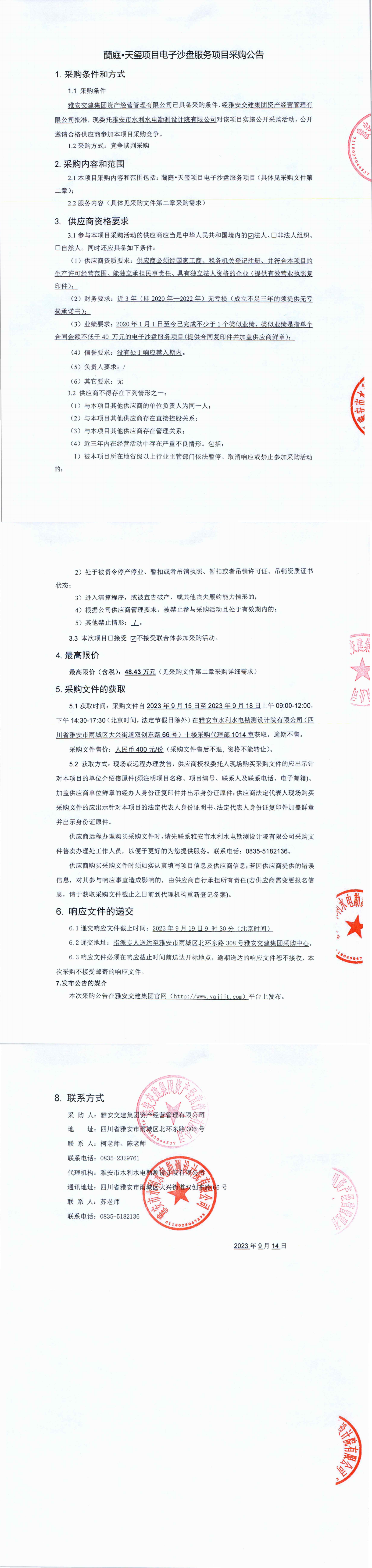 雅安交建集團(tuán)資產(chǎn)經(jīng)營(yíng)管理有限公司交建蘭庭·天璽項(xiàng)目電子沙盤服務(wù)項(xiàng)目競(jìng)爭(zhēng)談判公告