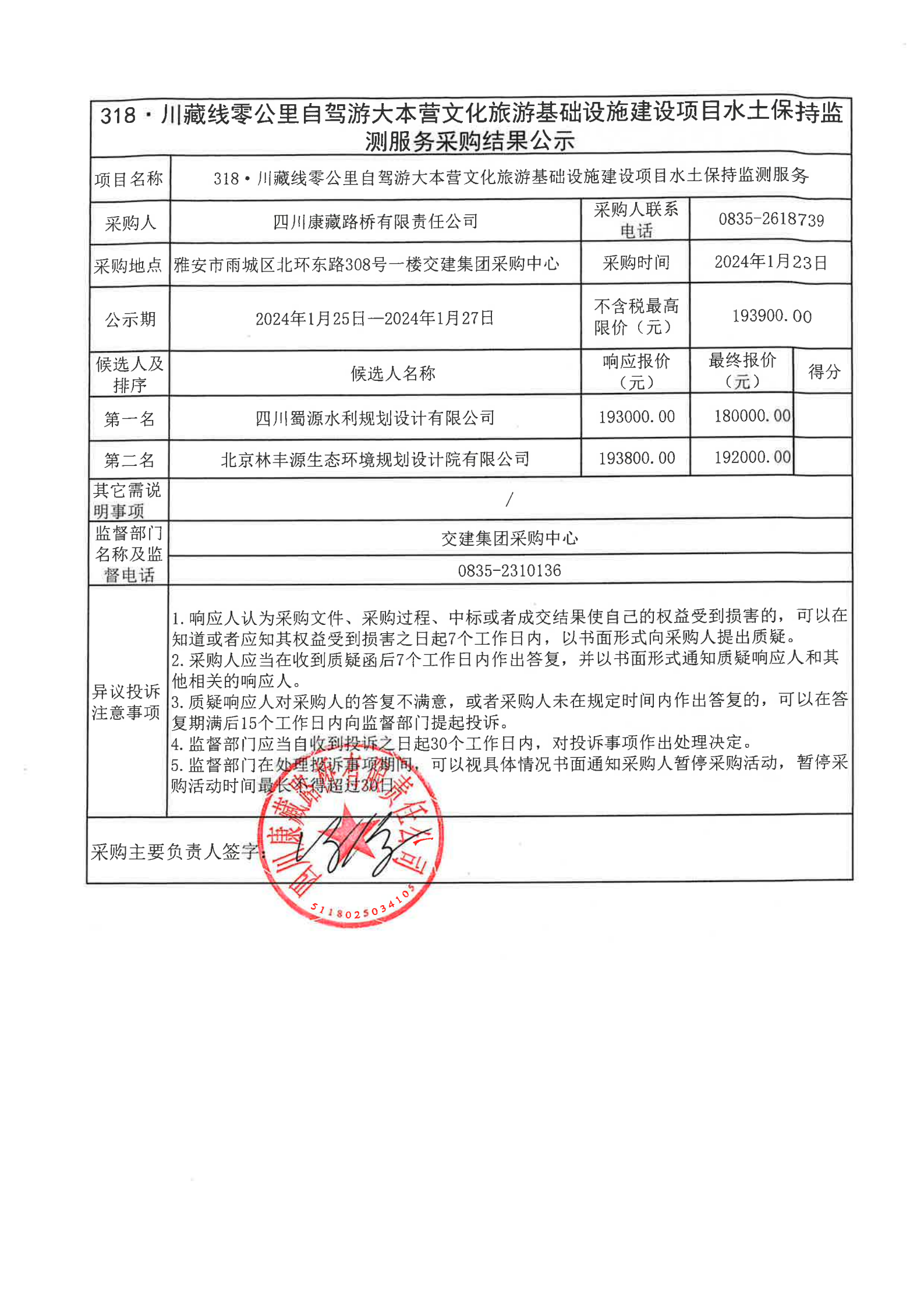 四川康藏路橋有限責任公司318·川藏線零公里自駕游大本營文化旅游基礎(chǔ)設(shè)施建設(shè)項目水土保持監(jiān)測服務(wù)采購結(jié)果公示