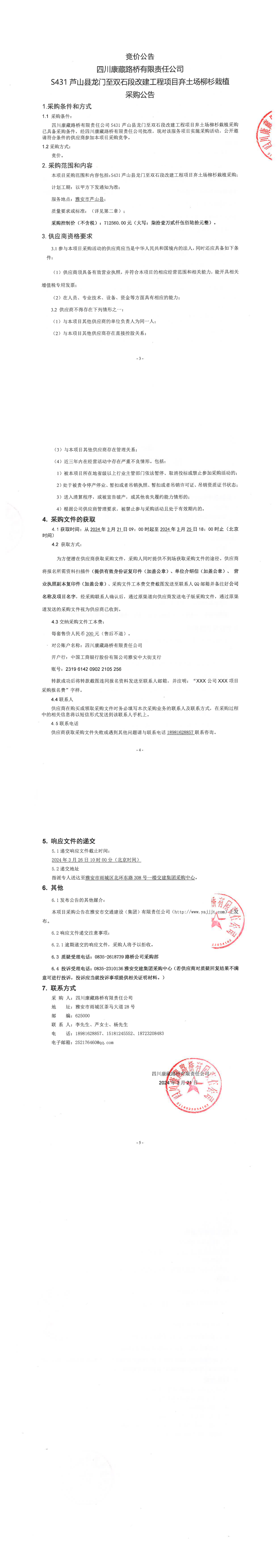 四川康藏路橋有限責(zé)任公司S431蘆山縣龍門至雙石段改建工程項(xiàng)目棄土場柳杉栽植采購公告