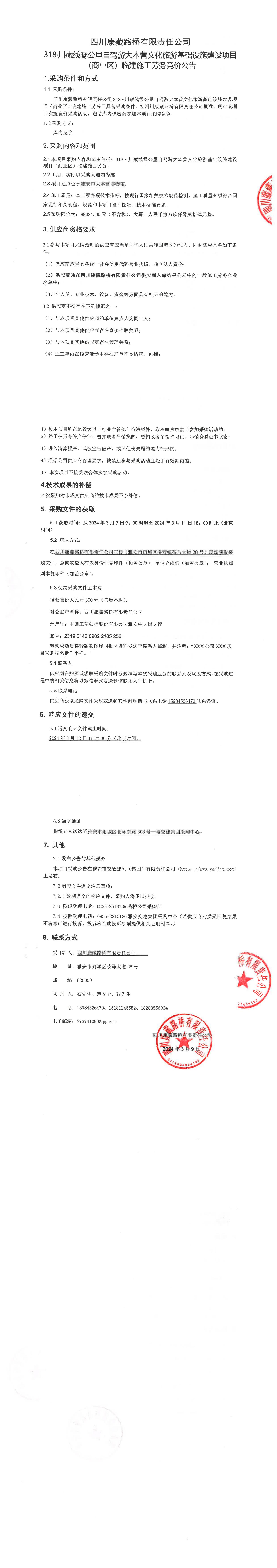 四川康藏路橋有限責任公司318·川藏線零公里自駕游大本營文化旅游基礎(chǔ)設施建設項目(商業(yè)區(qū))臨建施工勞務采購公告