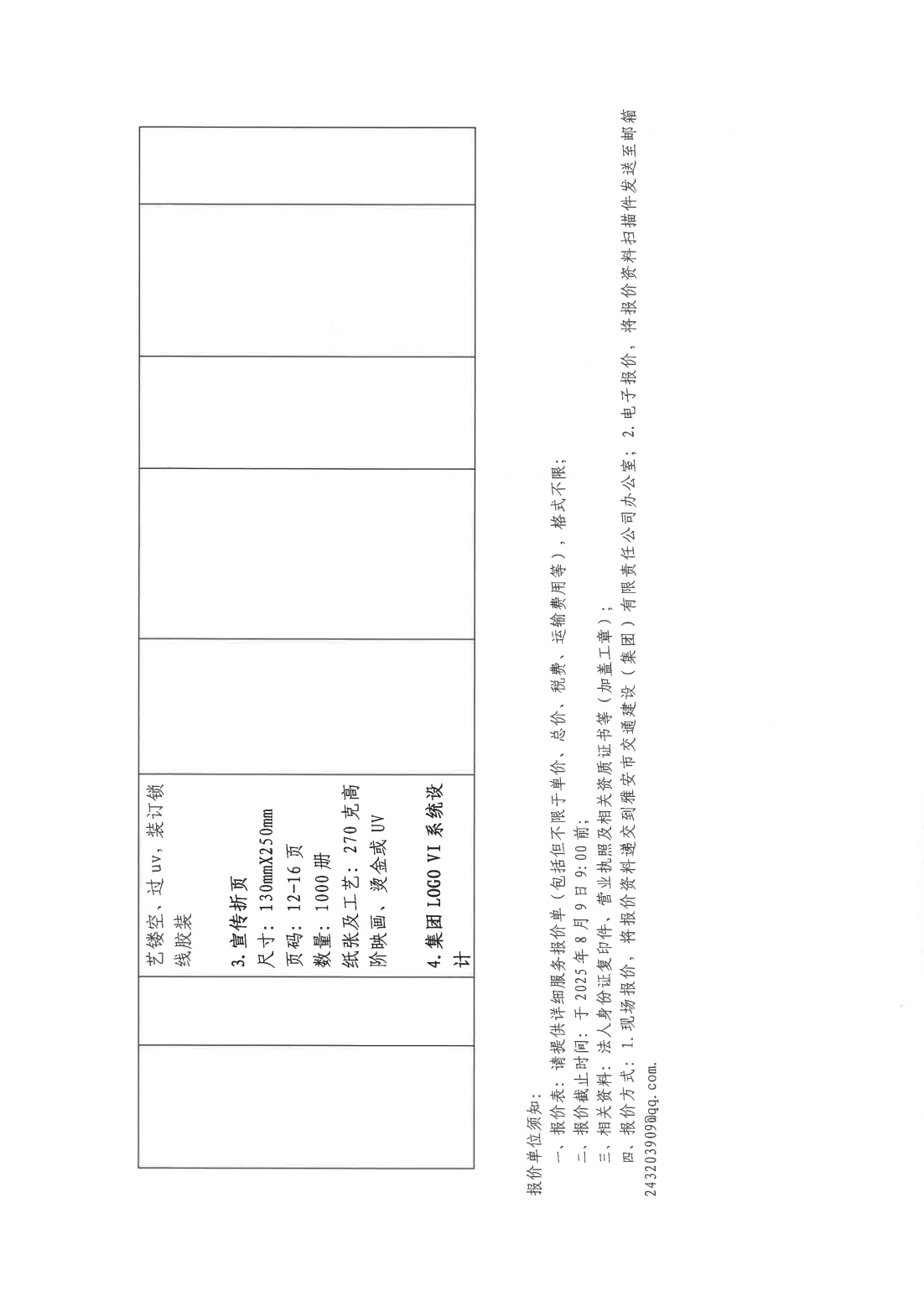 關于采購集團品牌形象宣傳服務單位的詢價函