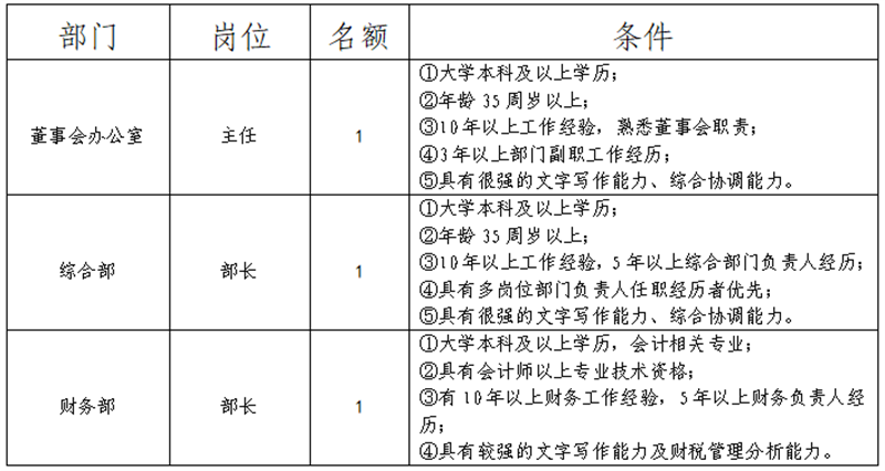雅安市交建集團(tuán)是市屬重點(diǎn)國(guó)有企業(yè),主要從事交通基設(shè)施建設(shè)、交通運(yùn)輸物流、建筑材料生產(chǎn)、資產(chǎn)經(jīng)營(yíng)管理、檢驗(yàn)檢測(cè)服務(wù)等業(yè)務(wù),根據(jù)公司業(yè)務(wù)發(fā)展需要,向社會(huì)公開(kāi)招聘中層正職3名。現(xiàn)將有關(guān)事項(xiàng)公告如下: