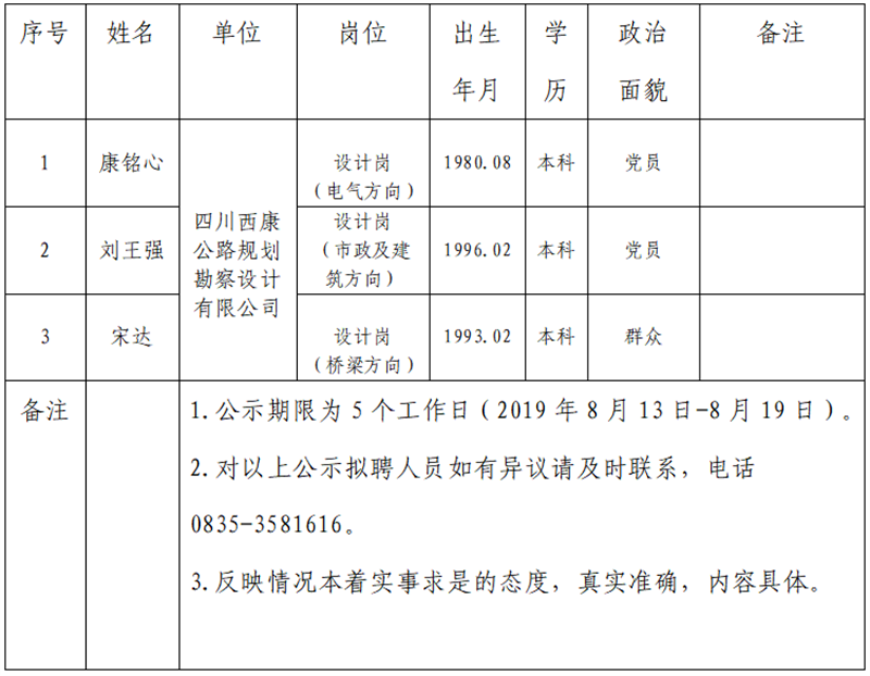 雅安交建集團子公司擬聘用人員公示(勘察設(shè)計公司)