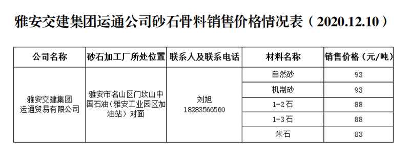 ÑŰ²½»½¨¼¯ˆF(tu¨¢n)ß\(y¨´n)ͨ¹«Ë¾É°Ê¯¹ÇÁÏäNÊÛƒr¸ñÇé›r±í£¨2020.12.10£©